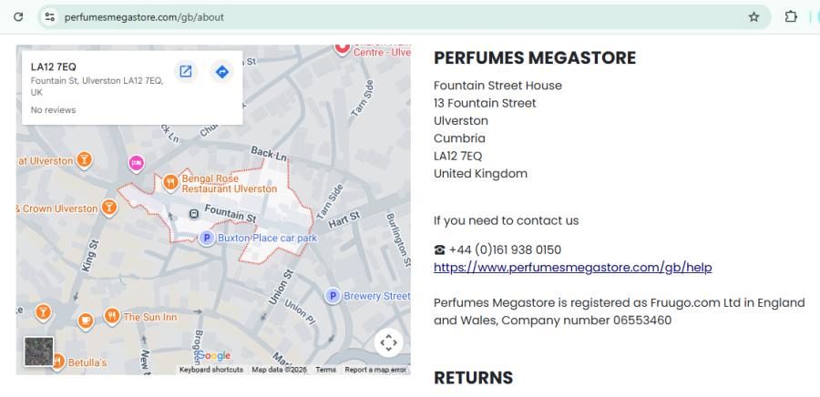 The site claims ownership by Fruugo.com Ltd, a company registered in England and Wales under company number 06553460. This corporate entity is a legitimate giant in the e-commerce world, operating as a marketplace rather than a direct retailer. This means Perfumesmegastore is just one piece of a much larger puzzle.