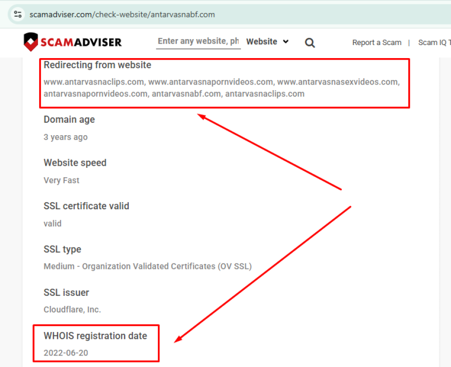 Antarvasnabf.com was registered in June 2022, according to Whois and ScamAdviser but it doesn’t exist as a standalone platform. Instead, it’s part of a wider network of similar domains that appear, disappear, and overlap.